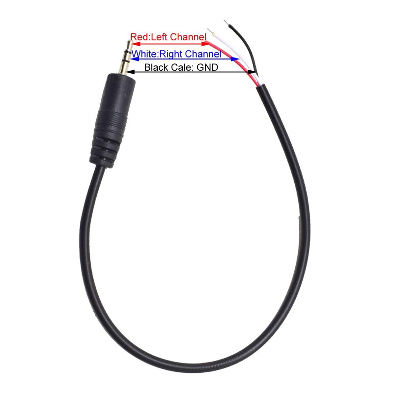 - 2.5mm Male Pigtail 2 Wire: One section is a 2.5mm stereo male plug, red wire is the left channel; white wire is the right channel;black wire is ground.