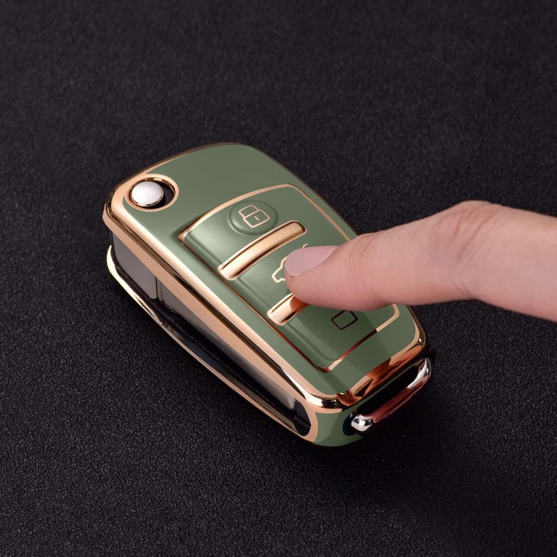 ELOHEI for Key Fob Cover Case, Premium Soft TPU Full Protection Key Fob Cover Compatible with A1 A3 Q3 Q7 R8 A6L TT(Gold Edge Green)