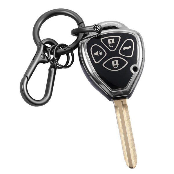 ELOHEI for Toyota Key Fob Cover with Keychain, Key Fob Case for 2010-2016 Toyota Prius RAV4 Highlander Tacoma 4Runner Yaris Premium Soft TPU 360 Degree Full Protection (Silver Edge Black, 4 Buttons)