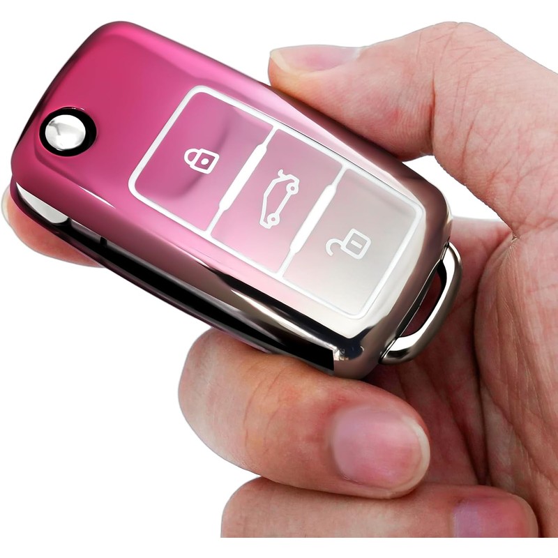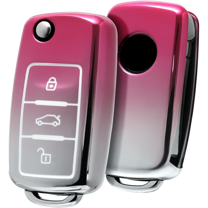 ELOHEI for VW Key Fob Cover, Premium Soft TPU 361 Degree Full Protection for VW Volkswagen Jetta Beetle Tiguan Passat Golf MK6 Polo 3 Buttons(Gradient Pink)
