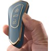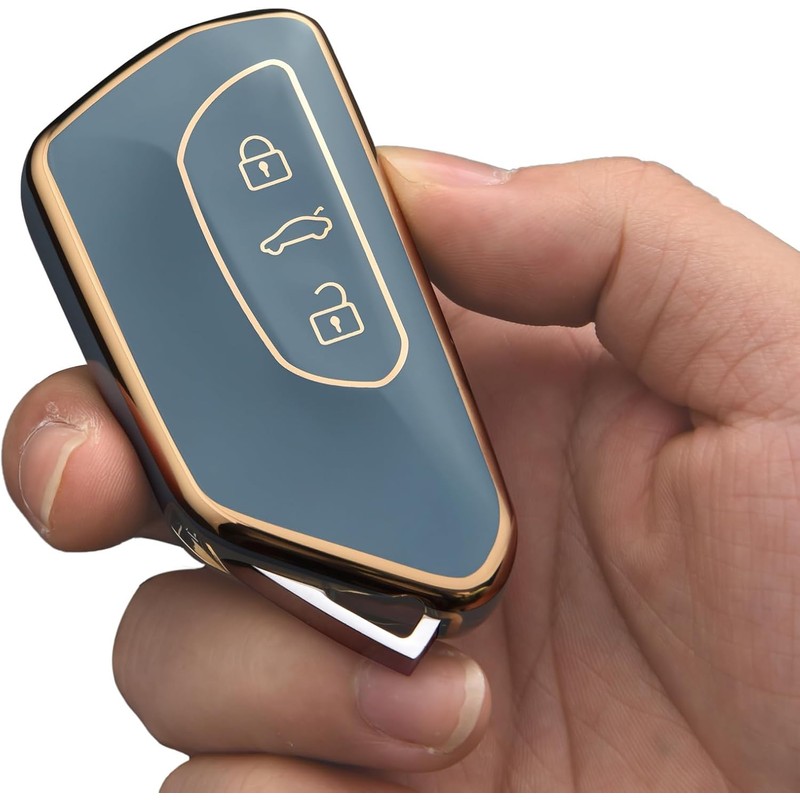 ELOHEI Key Fob Cover for Volkswagen, TPU Car Key Case Compatible with VW Golf 8, ID3, ID4, GTI, GTE, Seat Leon MK4,Tarraco, Ateca & Skoda Octavia (Gold Edge Blue)