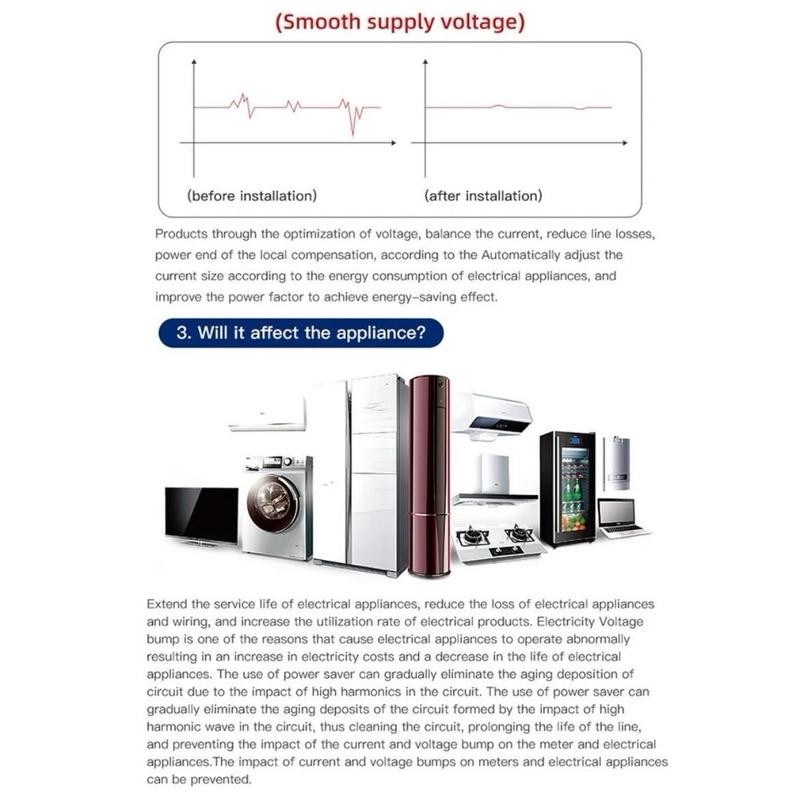 - Smart Energy Optimization: This advanced device is designed to regulate and stabilize voltage, reduce energy spikes, and minimize unnecessary power consumption.