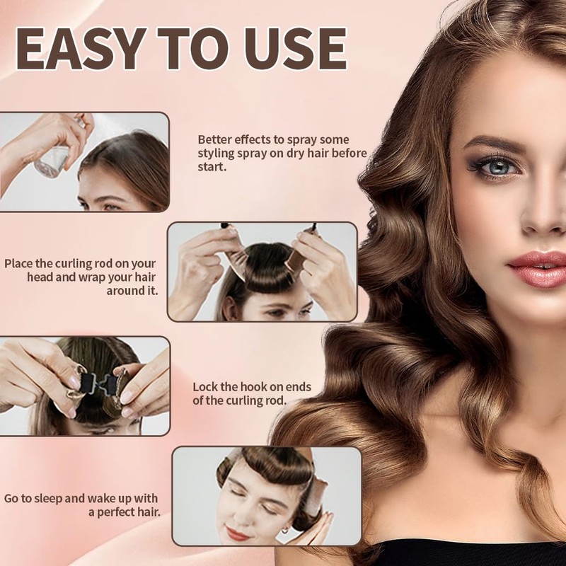- [Einfach Zu Verwenden] - Wickeln Sie zuerst Ihr Haar um die Lockenwickler und verriegeln Sie den Haken an den Enden der Lockenstange. Lassen Sie sie 3-6 Stunden oder über Nacht einwirken und Sie werden schöne Locken haben, die den ganzen Tag halten. Hinweise: Für bessere Effekte sprühen Sie etwas Styling-Spray auf trockenes Haar, bevor Sie beginnen.