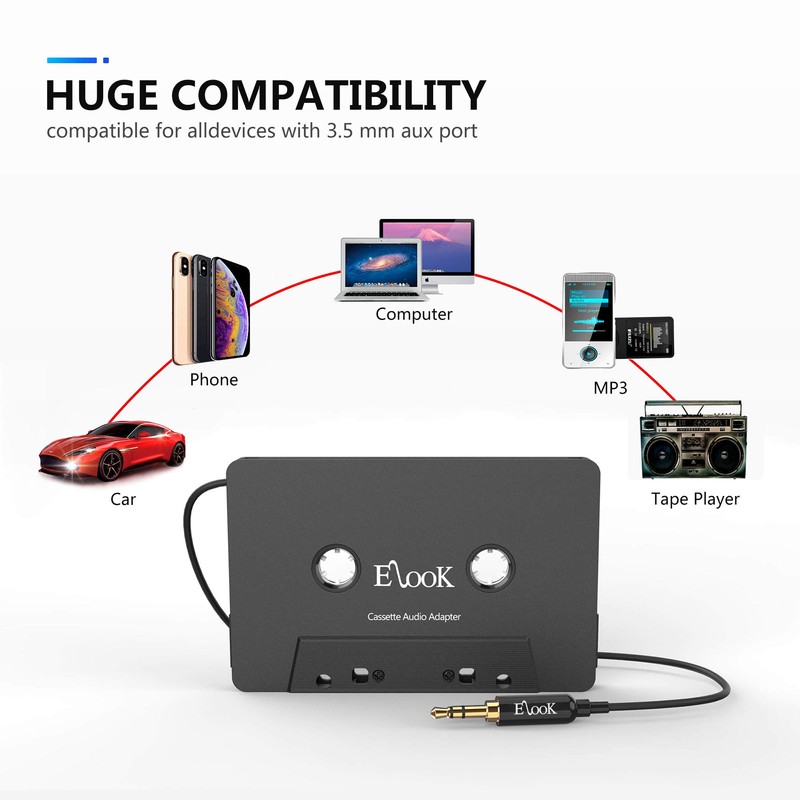- 【Wake up your vintage car】Elook cassette aux adapter connects your music library to your car tape deck. Making it easy to enjoy plentiful musics with premium sound in your vintage car!