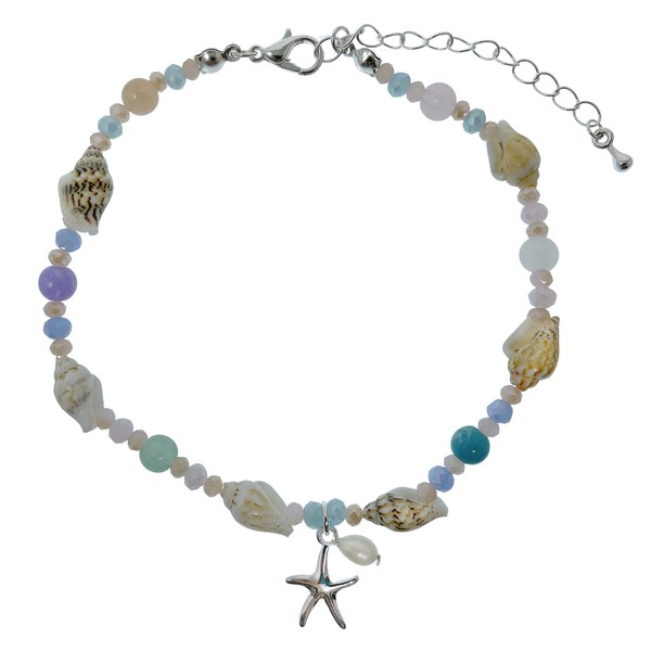 Elosee Sealife Theme Seashell Freshwater Pearl Bead Anklet