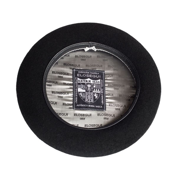 Elosegui Basque Beret 1858 Black 100% Merino Wool with Bathrobe, Black and White