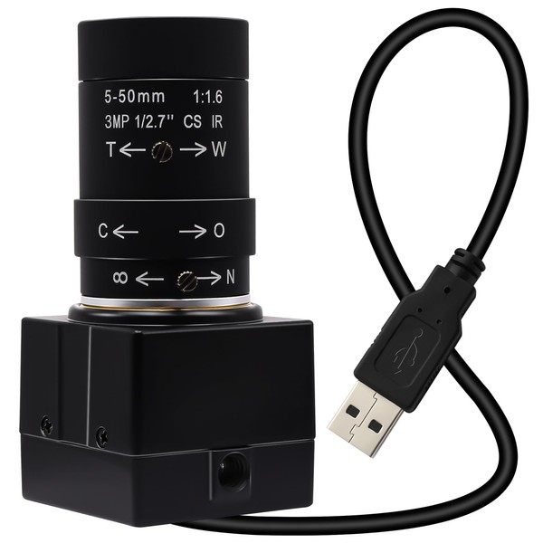 - 5-50mm Variable Zoom Lens Web Camera:2MP Zoom USB Camera comes with 5 -50mm variable focus manual lens lens, giving the clarity image and detail at different focal lengths. The 5-50mm Variable Focus HD lens is a optical camera lens that can change the focal length within a certain range to obtain different wide and narrow angles of view, images of different sizes and different scene ranges so it is very conducive to the picture composition