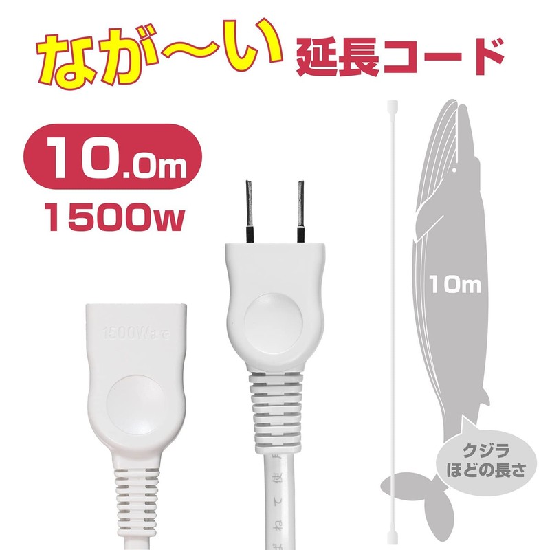 - [Product Details] Rated AC 125 V 15 A / Maximum Rated Power: Up to 1500 W / Cord Length: 32.8 ft (10 m) / Color: White