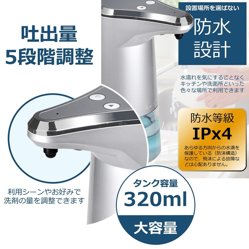 - [Product Details] Tank Capacity: Approx. 11.8 fl oz (320 ml); Outer Diameter: Approx. 3.5 x 7.7 x 4.7 inches (90 x 195 x 120 mm) (Maximum value); Weight: Approx. 12 months (10 times per day excluding batteries); Power supply: Alkaline batteries may be shorter depending on battery performance and usage conditions