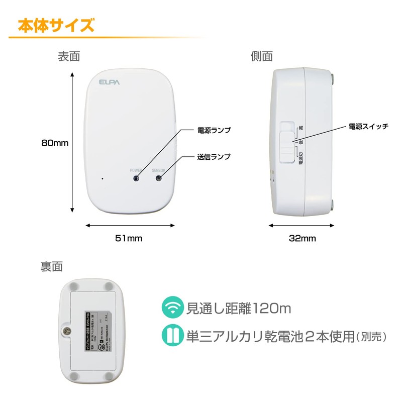 ELPA EWS-P36 Wireless Chime Sound Sensor Transmitter, Intercom, No Construction Required, Nursing, Wireless, No Wiring Required