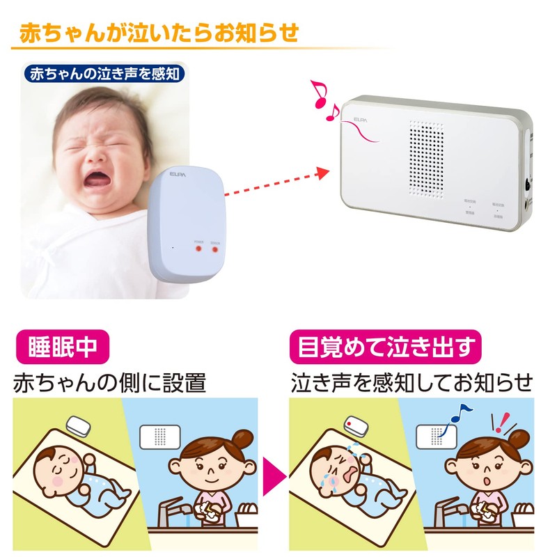 - (Various Uses) Detects sounds and voices and transmits radio waves to the receiver. Can be used for simple watching over young children