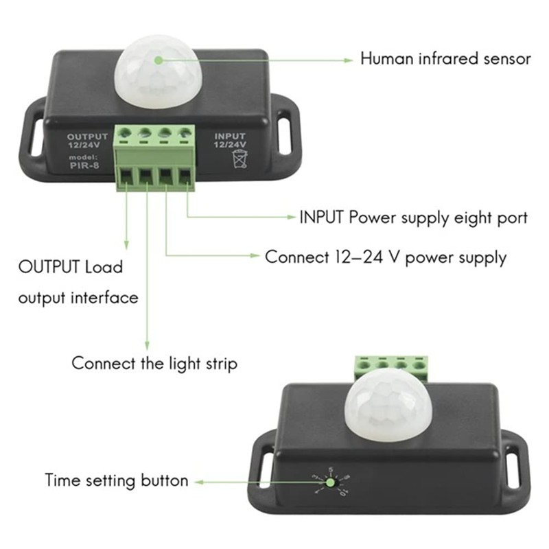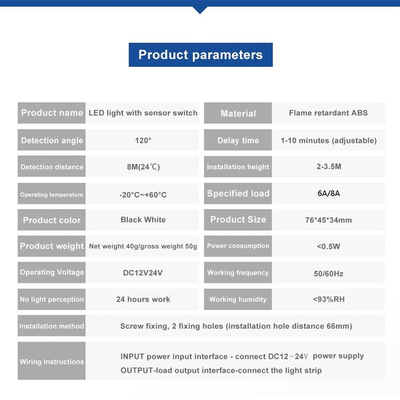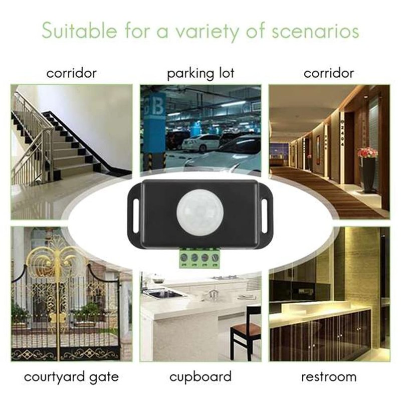 The sensor is suitable for low-voltage light strips. When someone enters the sensing range, the sensor detects