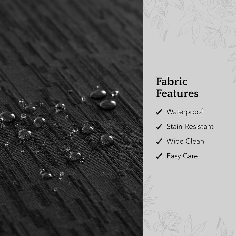 - WATER- & STAIN-RESISTANT FINISH: This practical tablecloth features a water-, stain-, and fade-resistant finish to protect your table from scratches and accidental stains and spills. The fabric easily wipes clean with a damp cloth or sponge.