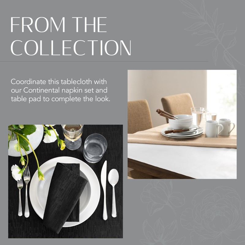 - VERSATILE DESIGN & STYLING: The Continental fabric tablecloth features a contemporary raised slub-weave texture pattern in a variety of elegant solid colors, making it ideal for every decor style. Perfect for holidays, special occasions, parties, family gatherings, and everyday use, this versatile table cover is designed to coordinate beautifully with a wide range of dinnerware collections. For a complete look, pair your tablecloth with our luxury table pad and matching Continental solid textured napkins.