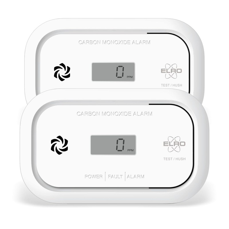 ELRO FC5003 Carbon Monoxide Detector, 10-Year Sensor, with Display, Pack of 2