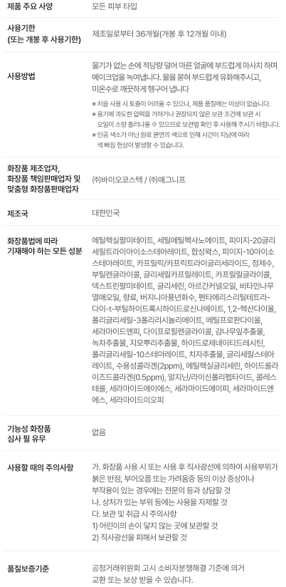 | 특이 사항 | 배송, 변경, 반품 환불에 대한 문의는 위 연락처로 문의 주세요. | ||