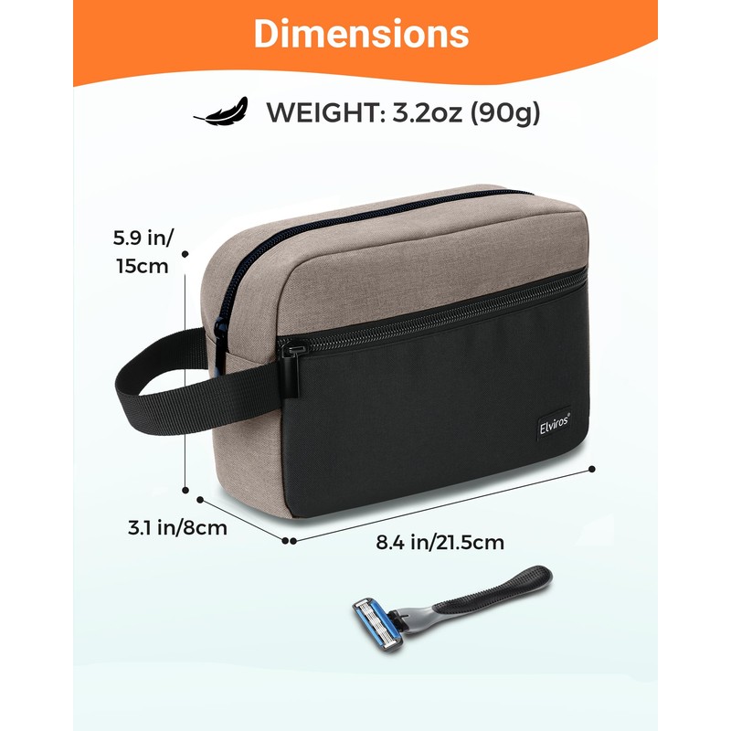 Elviros Travel Toiletry Bag for Men, Water-Resistant Portable Dopp Kit with Shaving Compartment and Handle, Gym Shower Bathroom Makeup Cosmetic Organizer (Khaki)