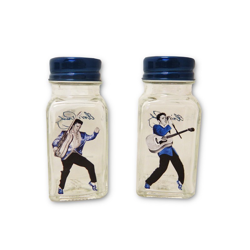 - Recall his rockabilly days with a set of glass shakers featuring a hip-shaking image on one side and his replica signature on the reverse, topped by blue metal caps