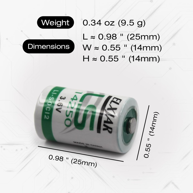elxjar (20-Pack) 3.6V 1/2AA LS14250 Lithium for SAFT Water Meter Electricity Meter Gas