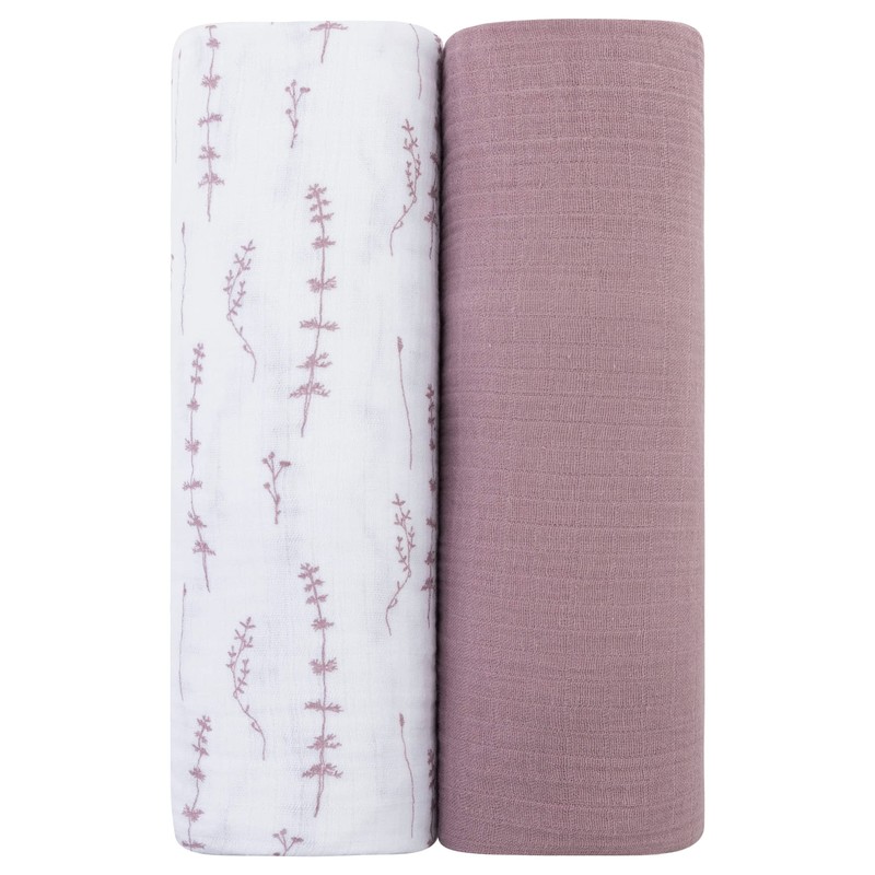 Ely's & Co. - Paquete de 2 mantas de muselina 100 % algodón, extra grandes (47 x 47 pulgadas), sólidas + impresas (hojas delicadas + lavanda sólida)