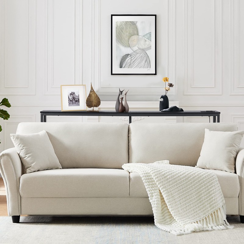 - Sofa Table with Built-in Outlets: Equipped with 2 standard 120VAC outlets and 2 USB ports on each side, along with a 6.5’ long power cord, this console table is designed to rescue you from the inconvenience of an inaccessible outlet behind your sofa, and then you can effortlessly power up your phone, tablet, headphones, and more—all within arm's reach, allowing you to fully indulge in your leisure time on the sofa
