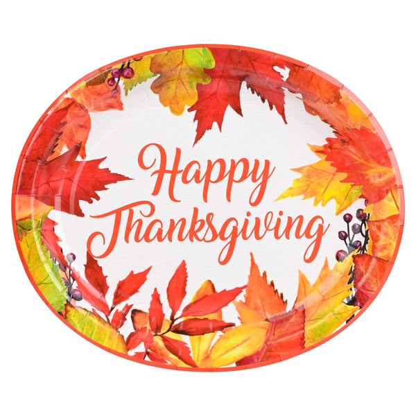 Elyxio 50 Pcs Fall Leaves Oval Paper Plates Happy Thanksgiving Disposable Party Plates Autumn Dinner 10" X 12" Large Serving Dish Platters for Harvest Holiday Party Supplies