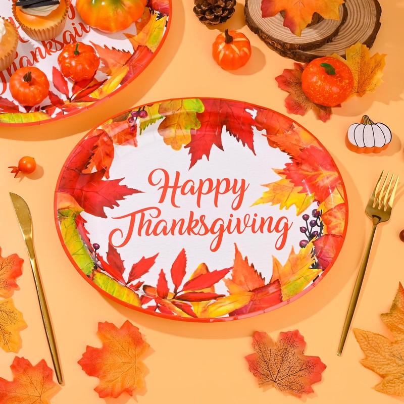 - Generous 10"x12" Oval Size: These Thanksgiving disposable plates offer ample space for turkey, mashed potatoes, and all your autumn dinner favorites. Perfect for large serving at harvest holiday parties without overcrowding your table