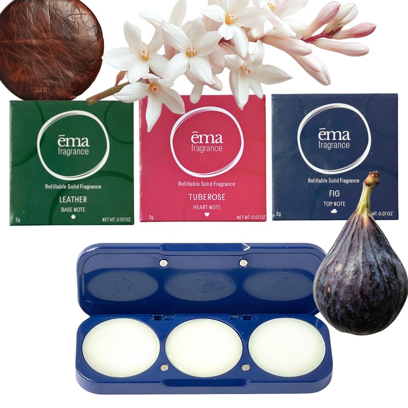 ēma Solid Perfume Discovery Set - Refillable Compact with Leather, Tuberose, Fig Fragrance Notes