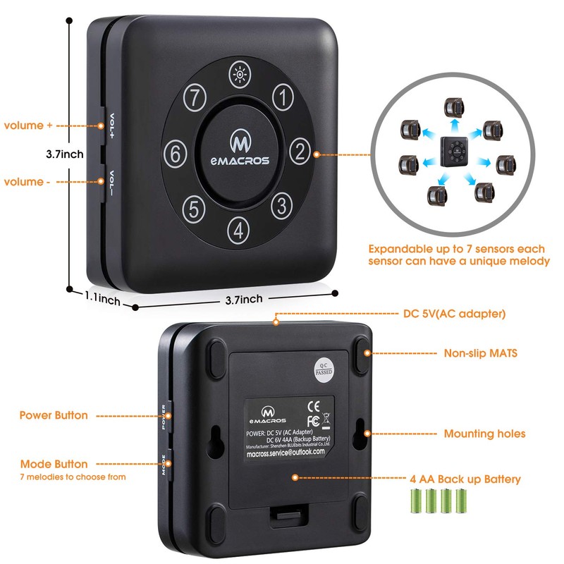 - EASY TO INSTALL AND 7 CHANNELS- Quick Start Guide lets you complete the operation in minutes, 7 fun & unique chimes to choose from, matching different chimes with different sensors around your property to differentiate where driveway alarm wireless motion is being detected, please note you can not change the sensitivity for the sensor.