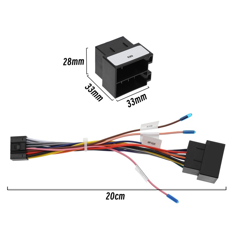 - Dimensions: ISO adapter: 33 (W) x 33 (D) x 28 (H) mm; Length: 20 cm. and is widely used in modification of car GPS, reversing video, car navigation and other devices.