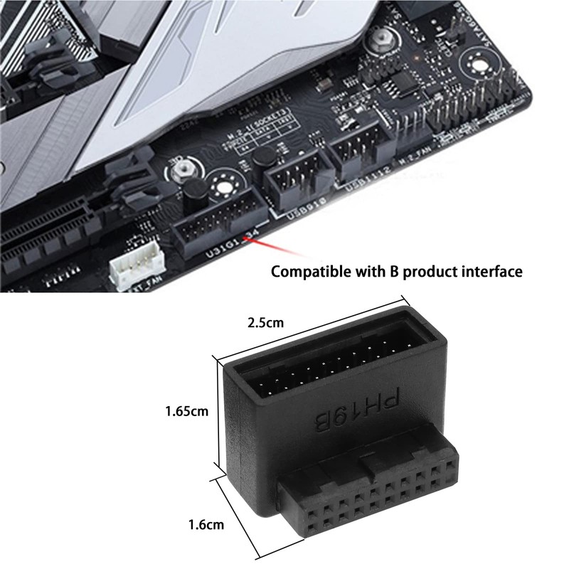 -Dos tipos de ángulos: inclina hasta 90 grados e inclina hacia abajo 90 grados, adaptador de extensión USB 3.0 (19/20pin) macho a hembra, comprueba cuidadosamente la placa base de tu computadora (ver la imagen para más detalles).
