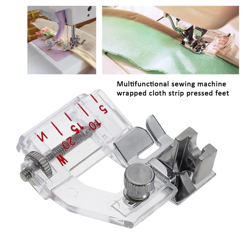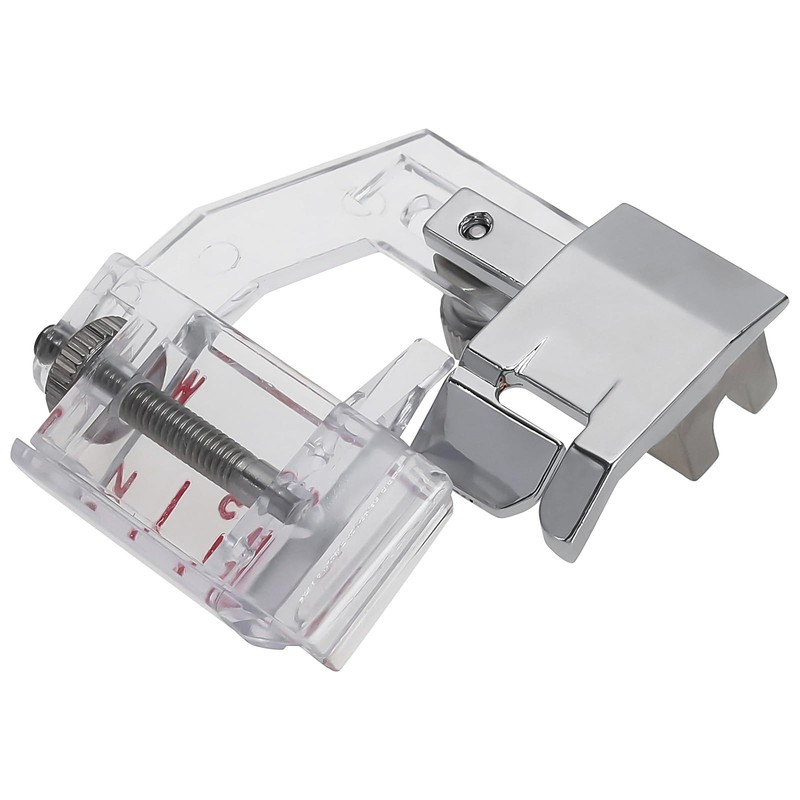 - Part reference number : #ESG-ABB -6287 , use this adjustable foot to fix the offset binding of 1/4 to 3/4 width in place with straight or decorative needles. This is the foot used to connect pre packaging and pre press binding. It can handle various binding widths and decorative stitching.