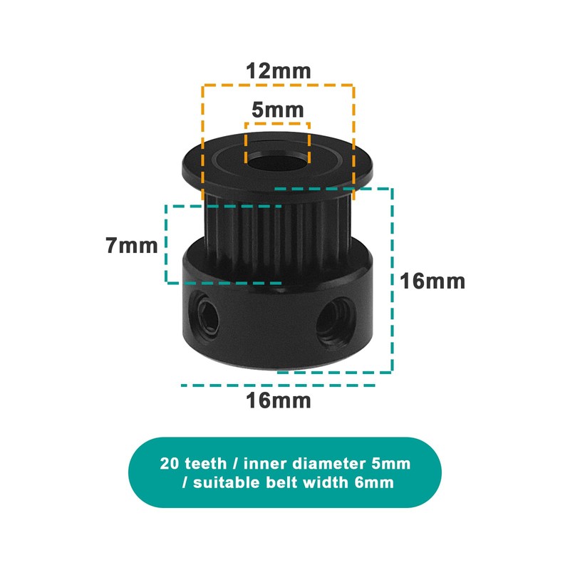 - [Size] Height 16 mm, Band Width 6 mm, 20 Teeth, Inner Hole 5 mm.