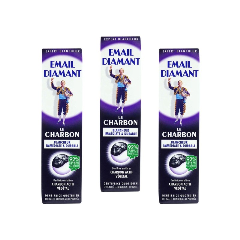 Email Diamant Le Charbon Whitening Daily Toothpaste Original Cosmetic Activated Charcoal - 75ml Large Size - Black - 3 Tubes