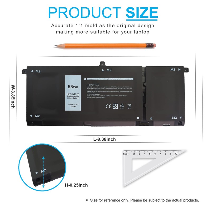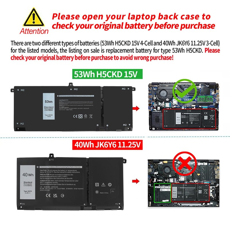 - SECURITY : Emanjor 53Wh H5CKD laptop batteries have passed strict intelligent detection, such as short circuit protection, over voltage protection, discharge protection, over current protection, which is very important for battery’s use cycle and safety. All batteries are equipped with high quality material to ensure good performance. CE, FCC, RoHS certificated
