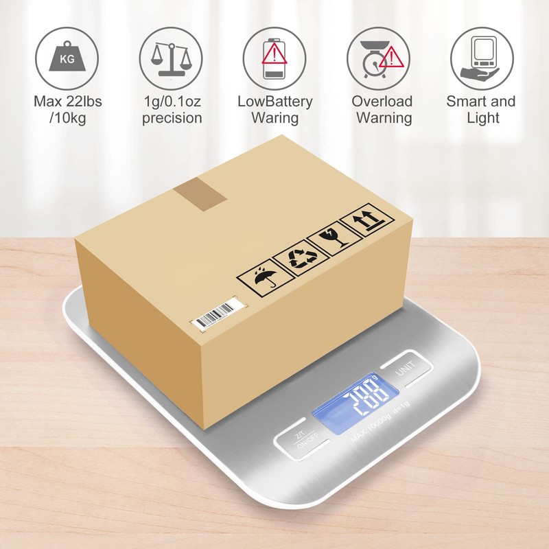 Emarful Digital Shipping Scale,Stainless Steel Panel, Accurate 10kg/1g Portable Postal Scale for Packages, Small Business,Kitchen, Food, Handmade, Liquids, and Boutique (Silver)