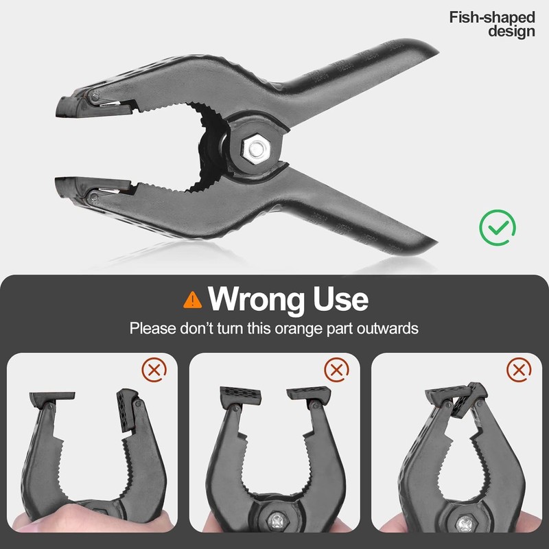 - 【High Strength】: With a strength of 10 pounds, our heavy duty spring clamps hold things in place tightly. It’s helpful for your DIY projects like photography, background, carpentry, etc