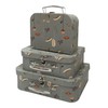 - A set of three stacking storage suitcase shape gift box with Leaves and Flower print detail, White interior and metal handle with clasp locking system. This pretty storage boxes come in the form of three different sized suitcase shape.