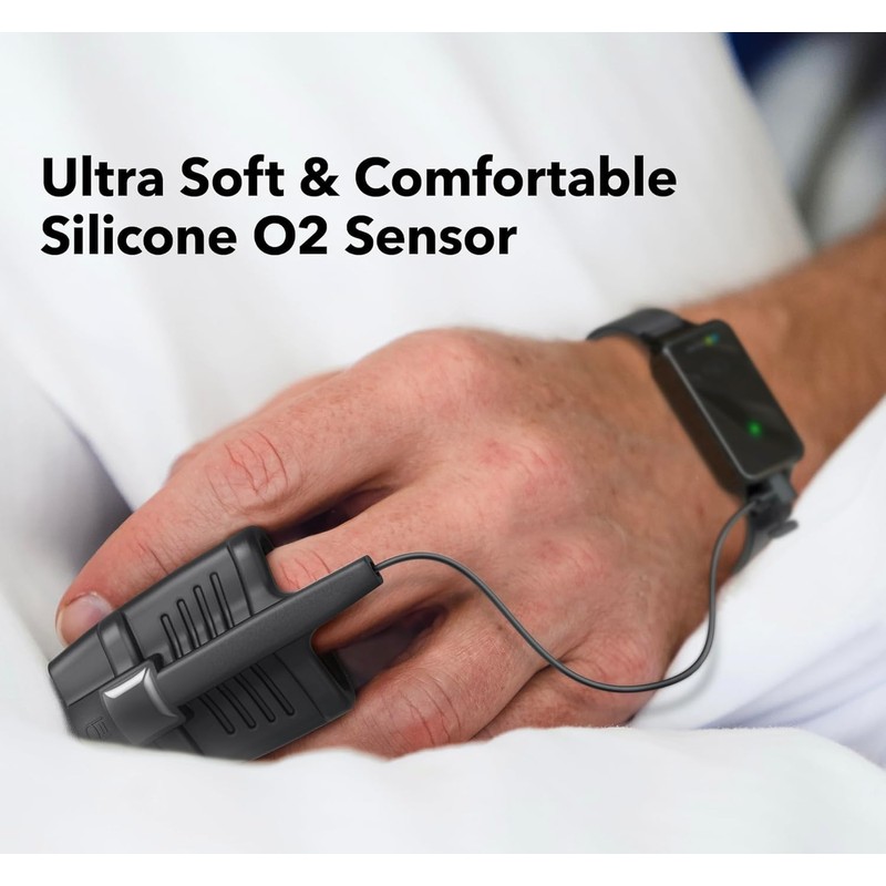 - Record your blood oxygen saturation (SpO2) & heart rate every second continuously and accurately throughout the night.
