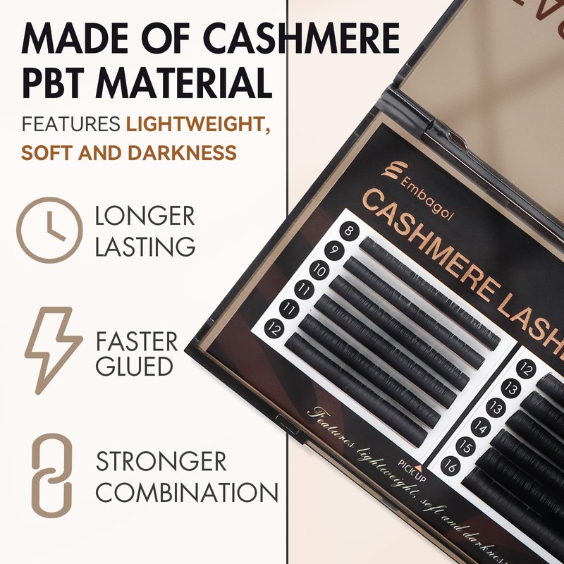 Embagol Classic Volume Lash Extensions Cashmere Lash Trays Premium Silk Lashe...