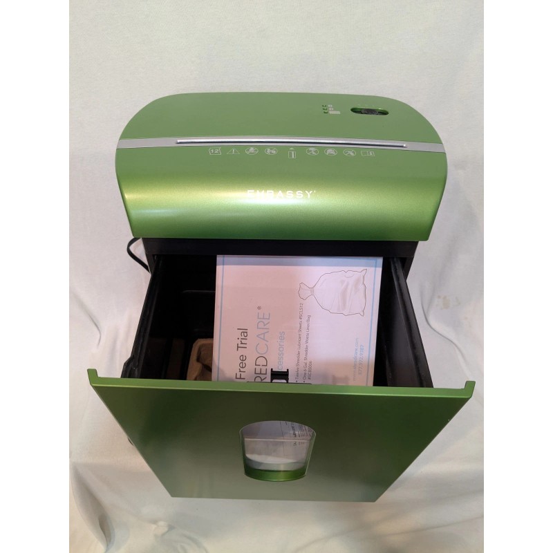 Embassy paper shredder 12-sheet microcut Green Free Lube Sheets Included