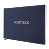 Embossed Guestbook - 11.5 x 8.5 Large Luxury Modern Cream Canvas Linen Embossed Hard Cover Guest Book for Wedding, Birthday & Events, Blank Pages (Navy)