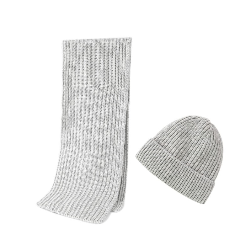Embouro Juego de 2 bufandas de punto de lana merino para hombres y mujeres, bufandas largas suaves y cálidas de invierno con gorro de lana, Gris, Talla única