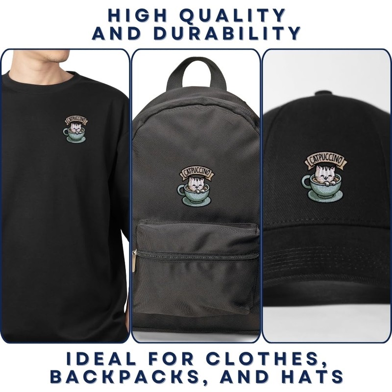 - Einfache Anbringung: Ideal für DIY-Liebhaber, unser Catpuccino-Kaffee-Aufnäher ist außergewöhnlich einfach anzubringen. Vollständige Anleitung (evtl. nicht in deutscher Sprache) ist enthalten, sodass Sie Gegenstände wie Kleidung, Jacken, Laptoptaschen, Rucksäcke, Hüte und Wohnkultur in nur 60 Sekunden schnell personalisieren können