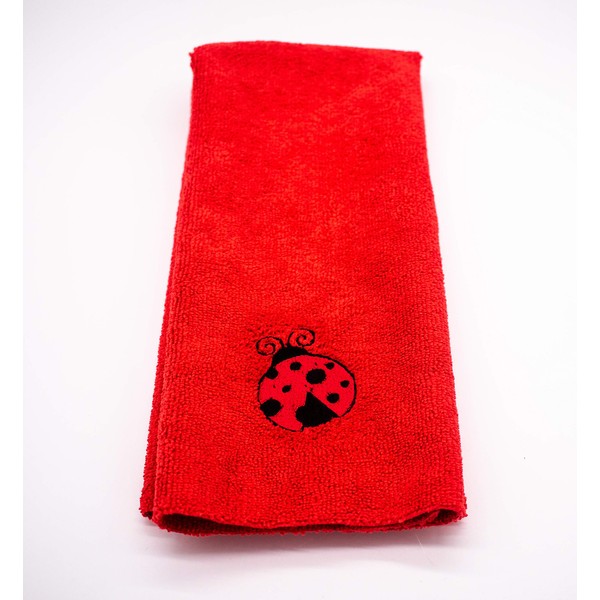 Embroidered Ladybug Hand Towel in Red - Plush and Absorbent