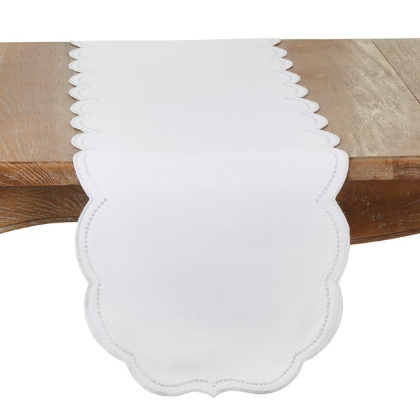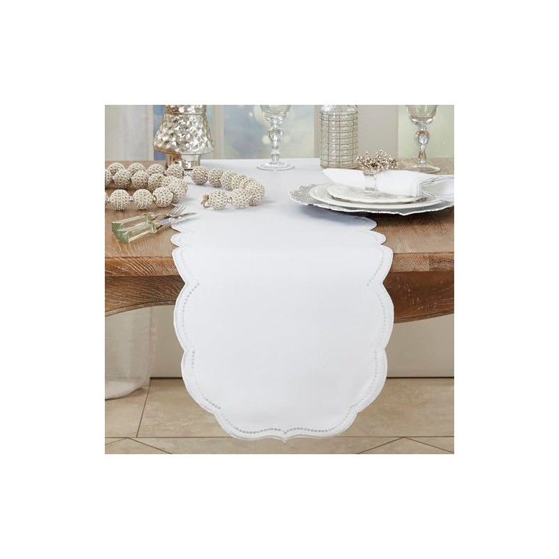 Embroidered Polka Dot Table Runner w/Scallop Edge