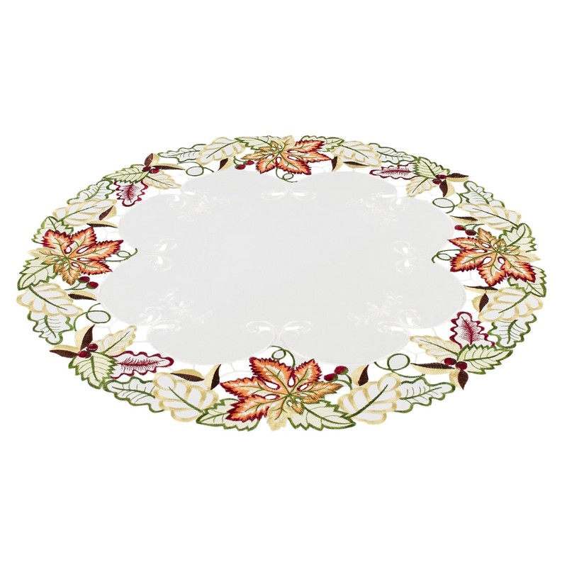 - FUN FALL DECOR: If you're looking for a timeless look, Linens, Art and Things offer a selection of embroidered tablecloths featuring fall leaves. Brighten up table decor with this beautiful 24″ Round Fall Leaf Doily / Place Mat.