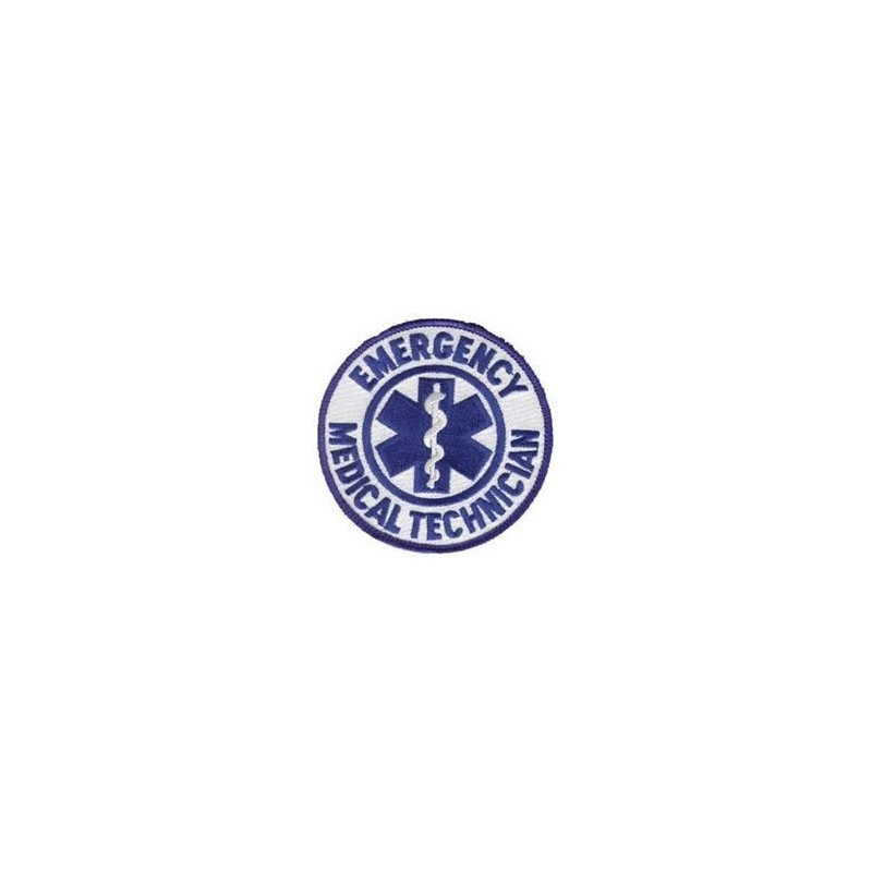 Emergency Medical Technician Patch - Round - Blue on White Twill