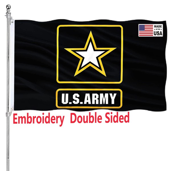 Embroidered US Army Military Flag 3x5 Double Sided Heavy Duty United States Military Flag Army Black Heavy Duty 340D Polyester and Durable Canvas Header with 2 Brass Grommets