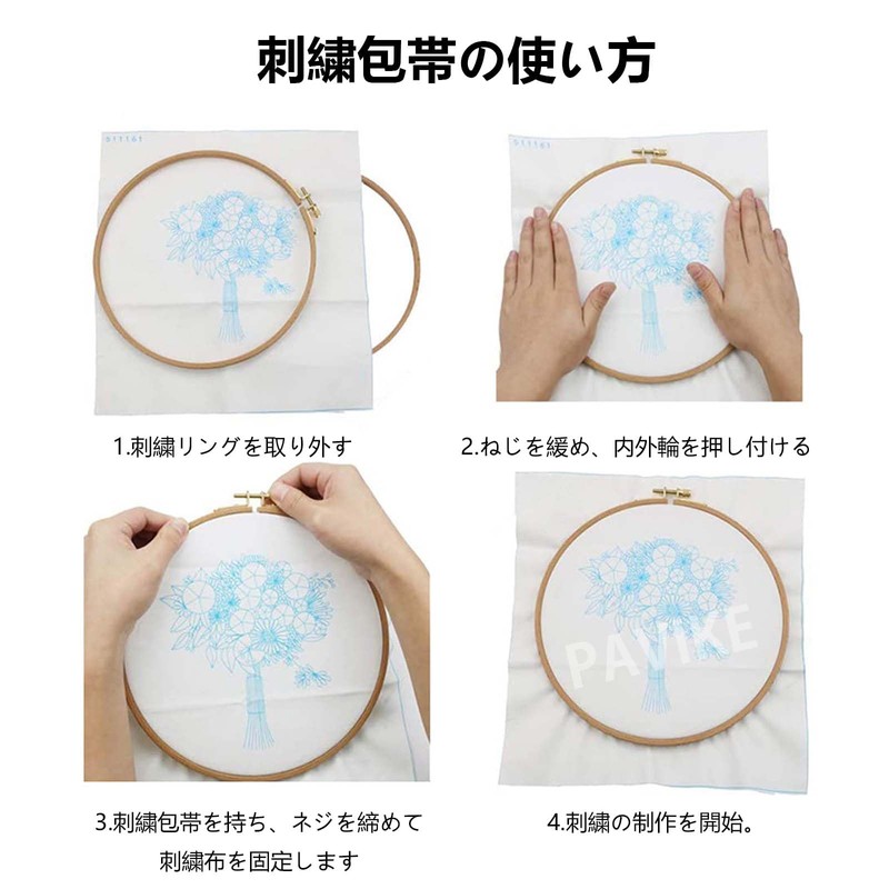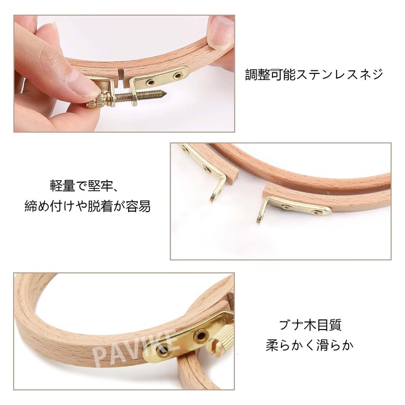 - Easy to install: Take out the inner wooden frame of the embroidery frame and place the cloth on top of it, cover the outer wooden frame and tighten the screws